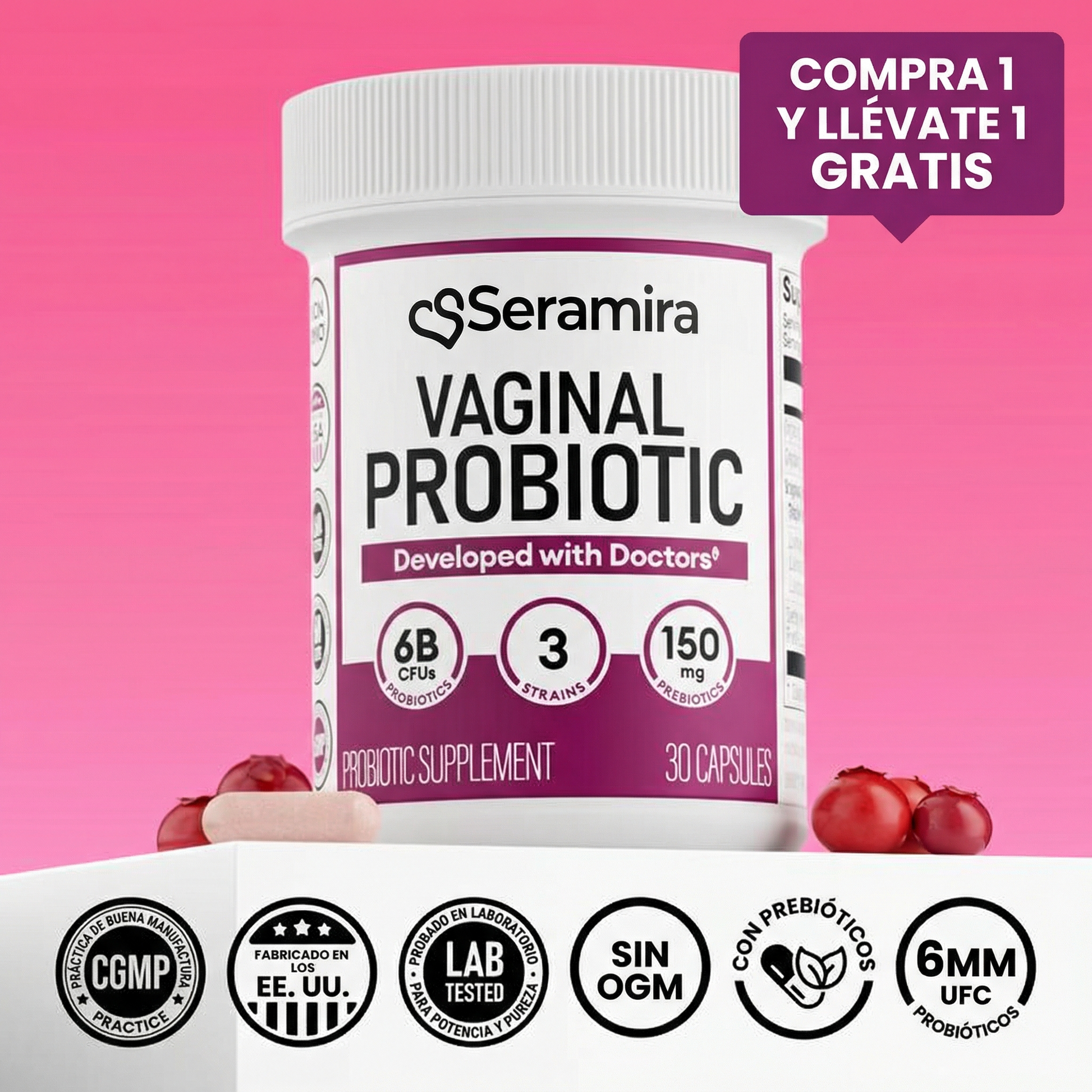 Los probióticos del yogurt son genéricos y no están diseñados específicamente para la salud vaginal. Nuestro probiótico tiene 3 cepas específicas de Lactobacillus que se han estudiado clínicamente para eliminar candidiasis. Además, tiene prebióticos que alimentan las bacterias buenas, algo que el yogurt no tiene.