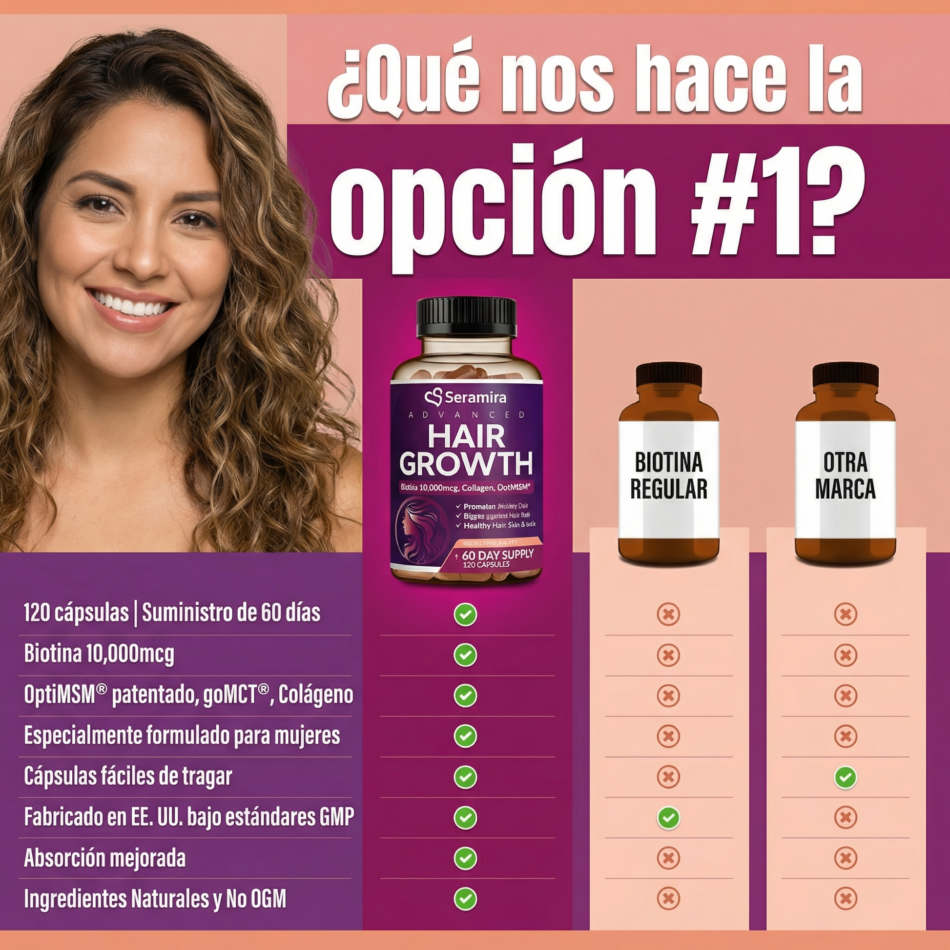 Aunque la biotina y las vitaminas en esta fórmula son generalmente seguras, la biotina puede interferir con análisis de sangre de tiroides. Si tienes hipotiroidismo, hipertiroidismo, o tomas medicamentos para la tiroides, consulta con tu doctor primero. Puede que necesites pausar las vitaminas 3 días antes de análisis de sangre.